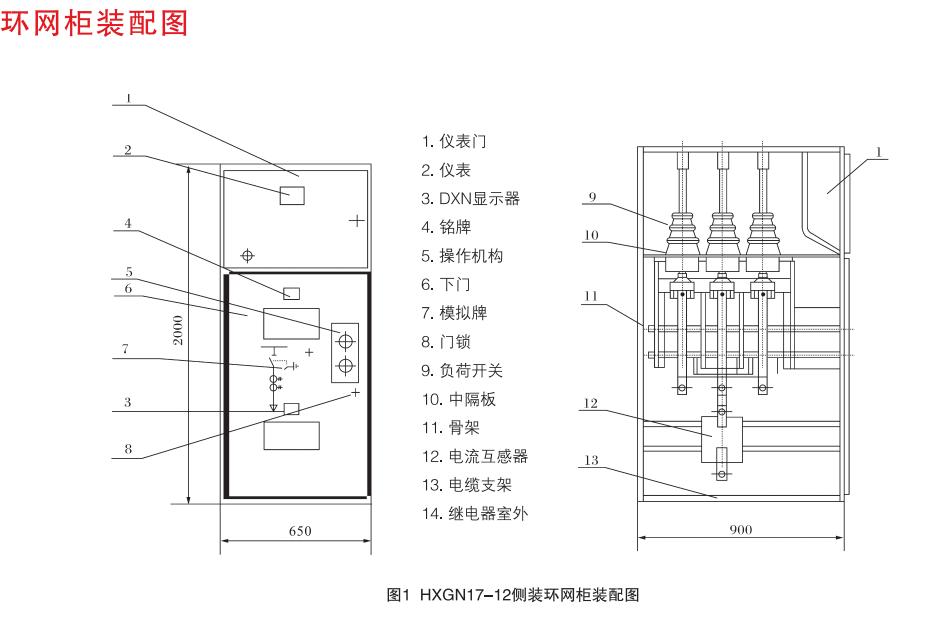 a.電器元件電器元件主要由無側(cè)面操作機構的FN12-12型負荷開關,VEI公司ISARC型負荷開關.LK〔公司LBS型或VL日S型負荷開關(8),電流互感器(11),電壓互感器,高壓帶電顯示器(3)等組成。